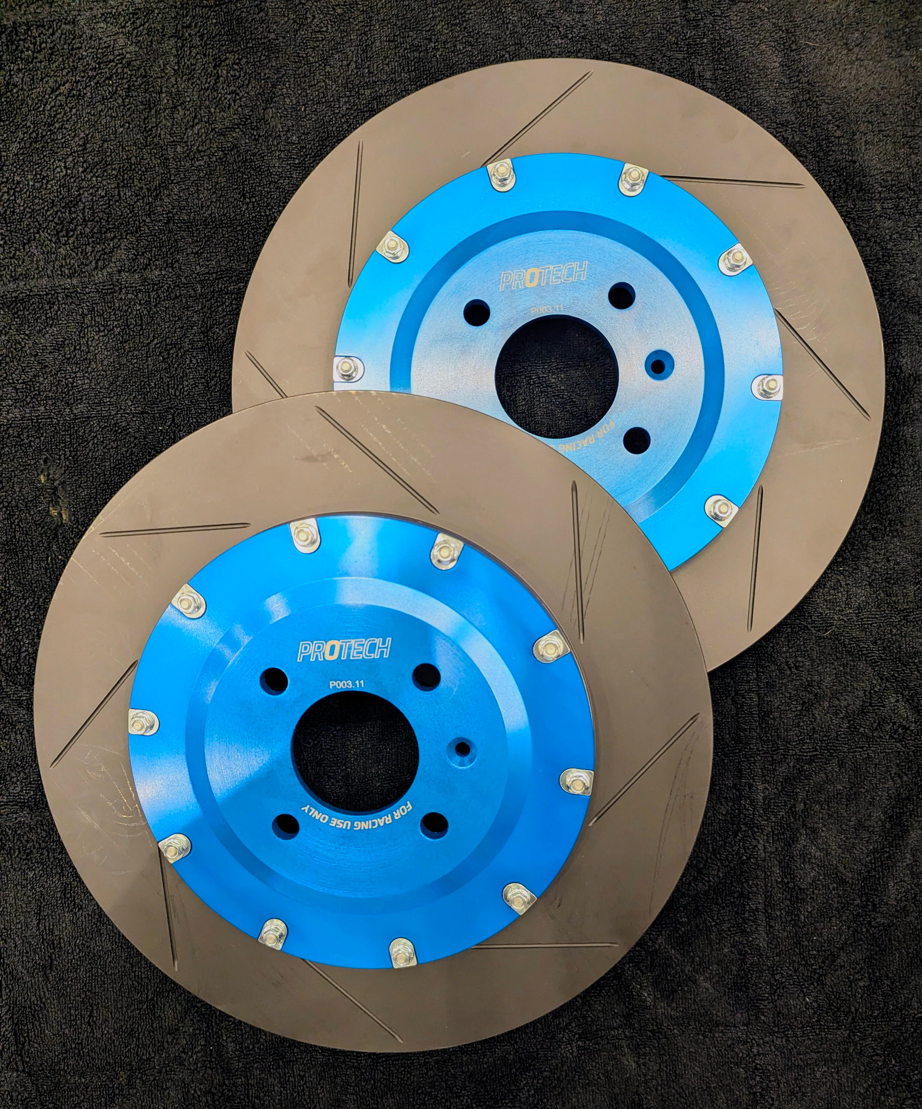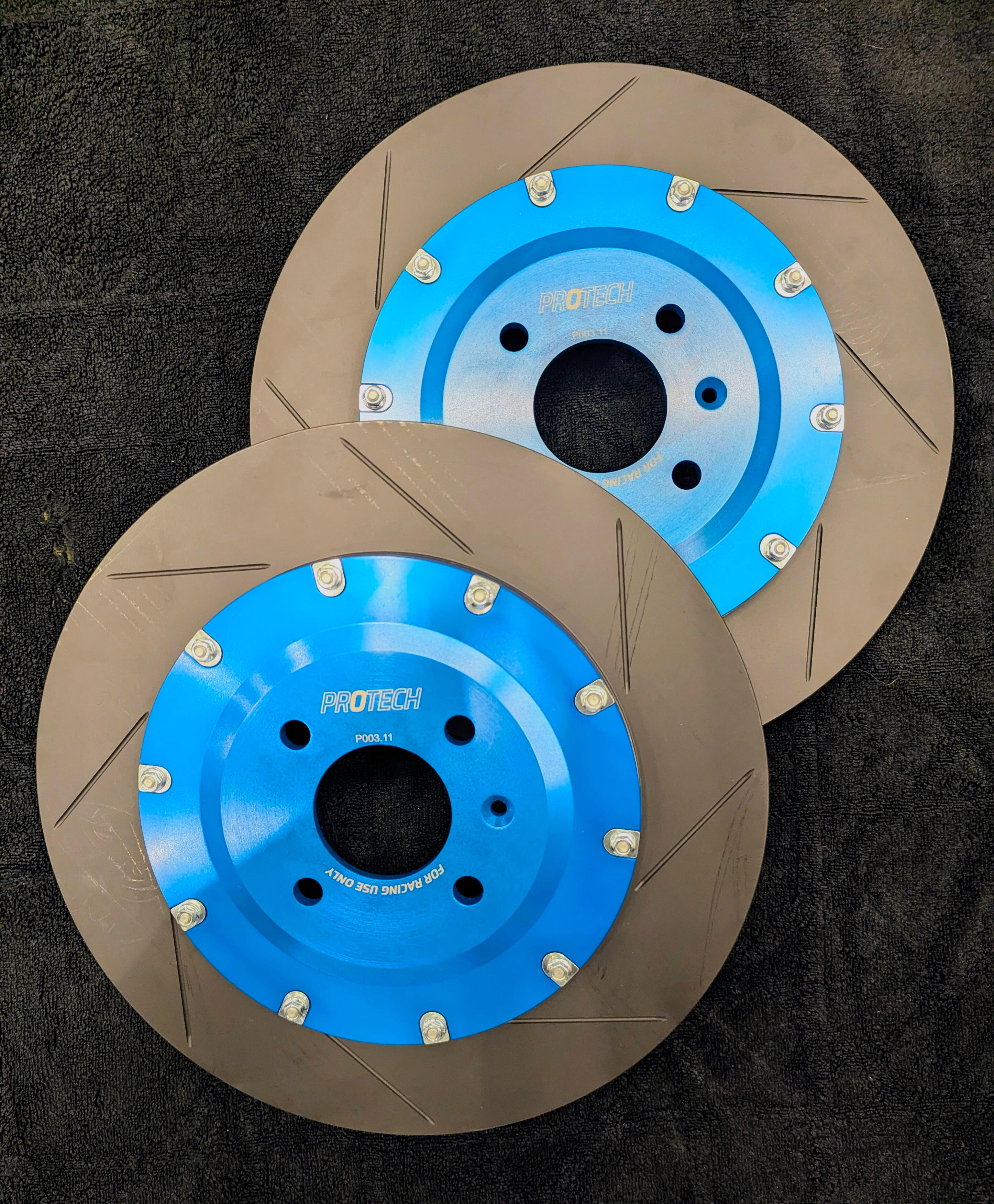 An aluminum bell housing weighs much less than a monolithic steel disc, this improves the response of the suspension and steering, making the car more precise.We at ProTech Engineering design decomposable discs with the possibility of total customization: